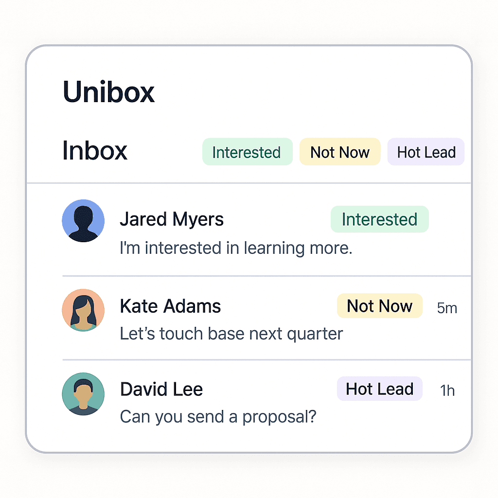 Monitor lead behavior in real time. Track campaign results, sender performance, A/B tests, and how different sequence steps are performing.